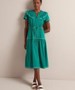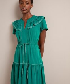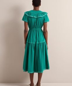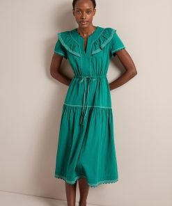 Nessa Cotton Seersucker Maxi Dress – Dark Green